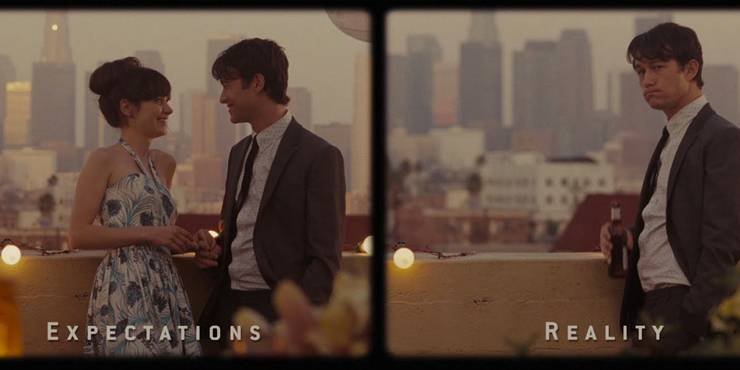 Jedną z najbardziej ikonicznych scen w filmie jest moment „oczekiwania vs. rzeczywistość”, w którym Tom ponownie widzi Summer. rzeczywistość” moment Toma widzącego Summer ponownie po ich zerwaniu. Wyobraża sobie, że mają wspaniały wieczór, a nawet podpowiedzi na ich powrót do siebie. W rzeczywistości, nie rozmawiają przez całą noc i Tom wraca do domu zdenerwowany.